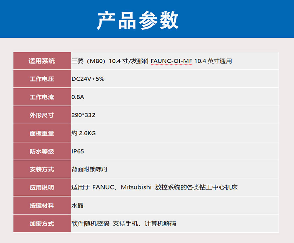 產品介紹:FANUC鉆攻中心鎖碼面板產品特點: