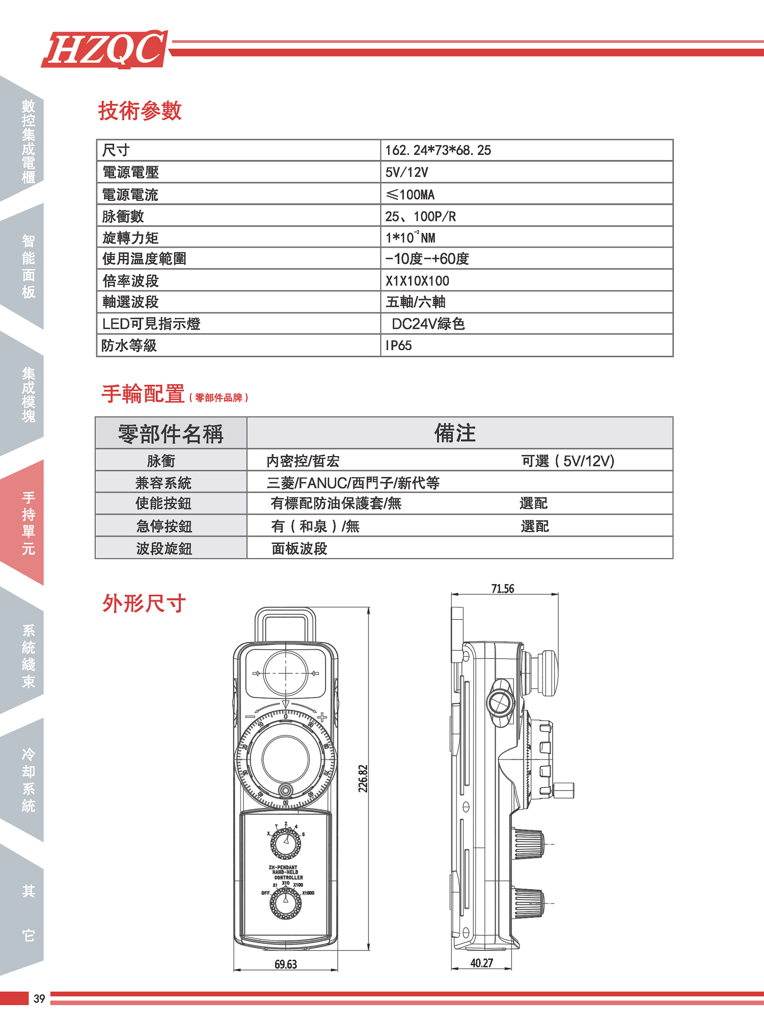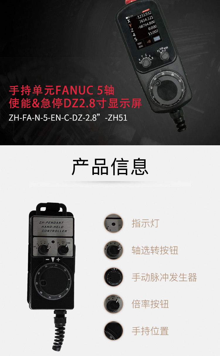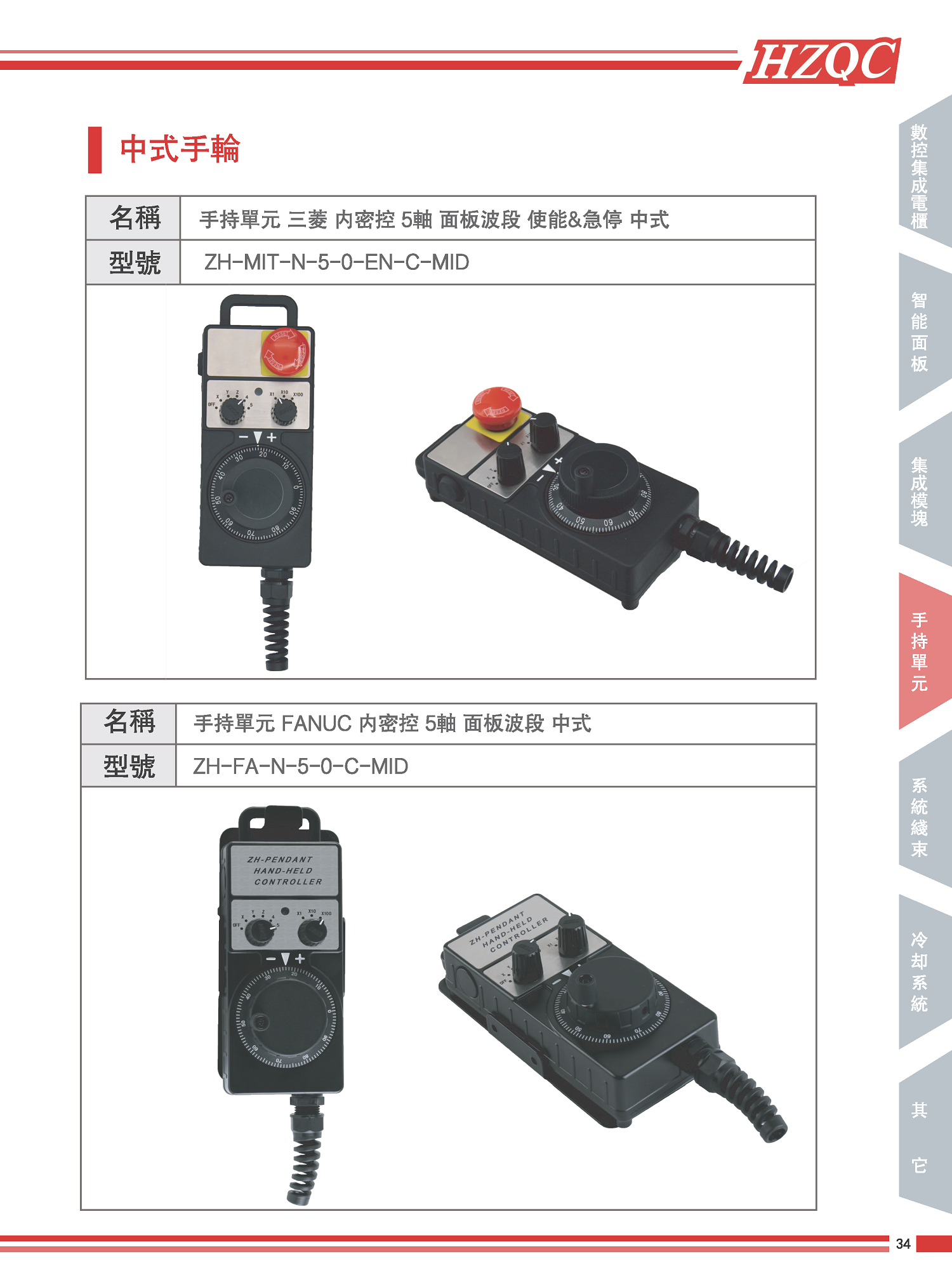 >> 哲宏手持單元 5軸 面板波段 急停&使能 中式 20P